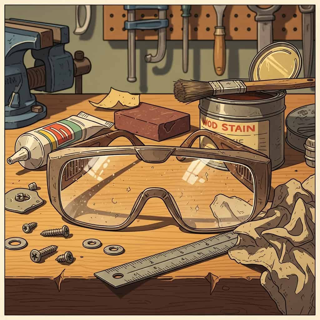He had safety glasses. They were on the bench. Under a pile of plans. Next to the coffee mug full of screws.