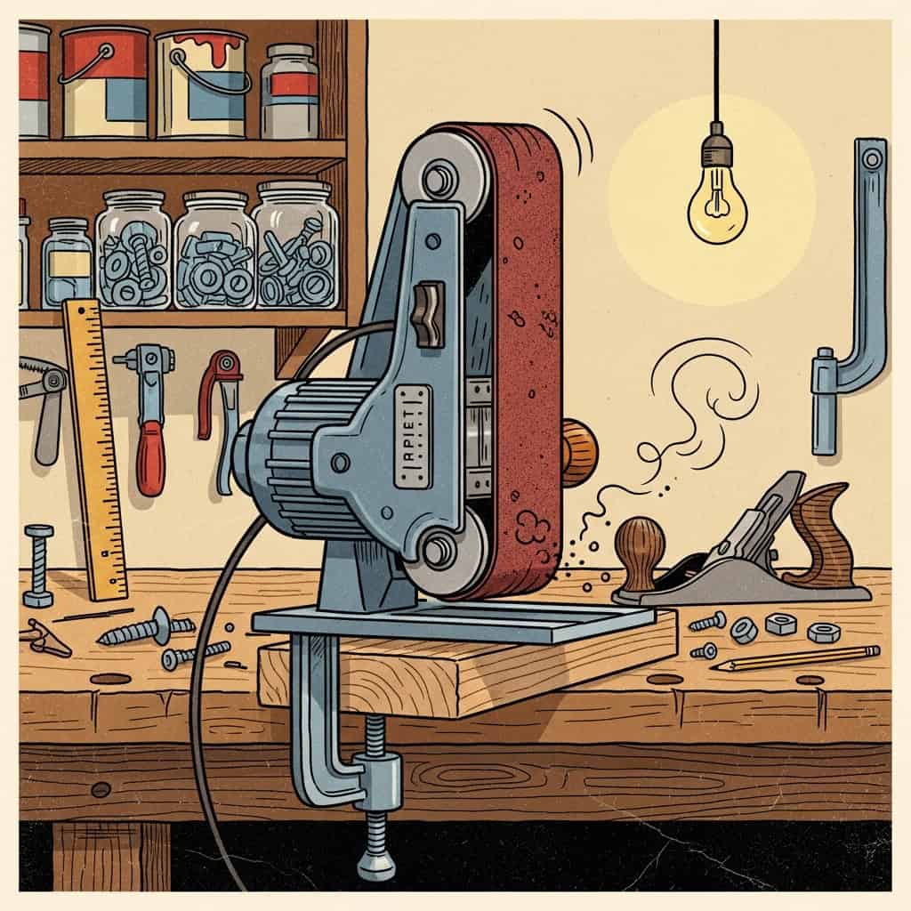 11. A Belt Sander Clamped Upside-Down as a “Sharpening Station”