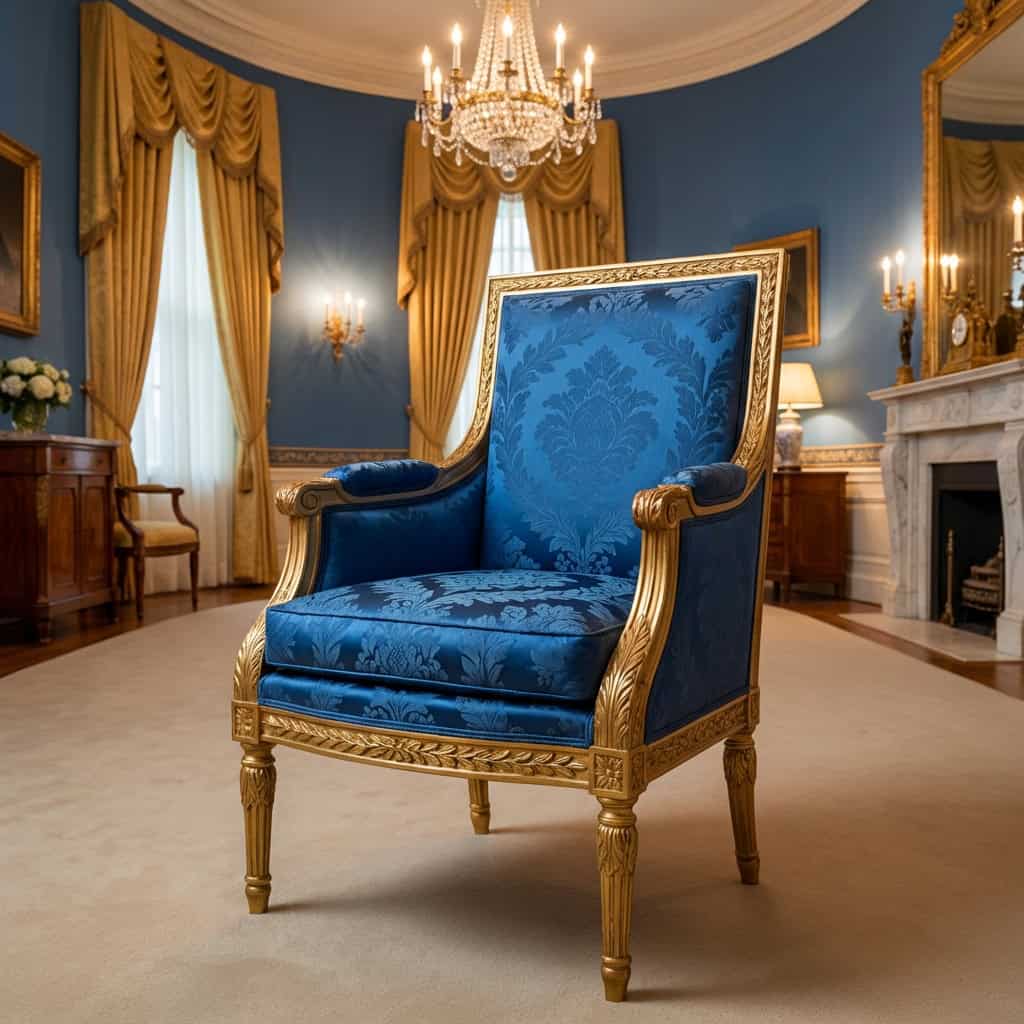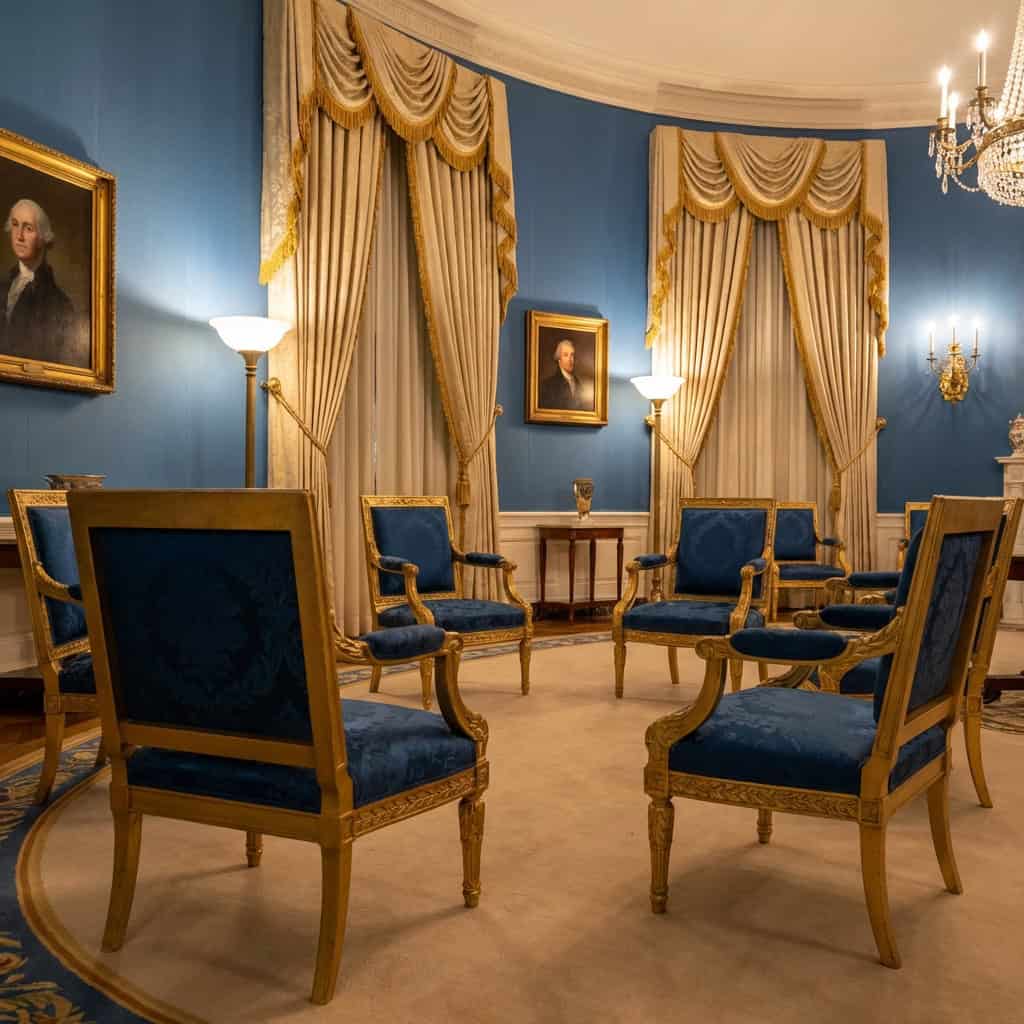 Jackie Kennedy made it her personal mission to track down and recover the originals. She found and acquired several chairs and a sofa, had reproductions made to fill in the gaps, and restored the Blue Room to something close to what Monroe envisioned two centuries ago.