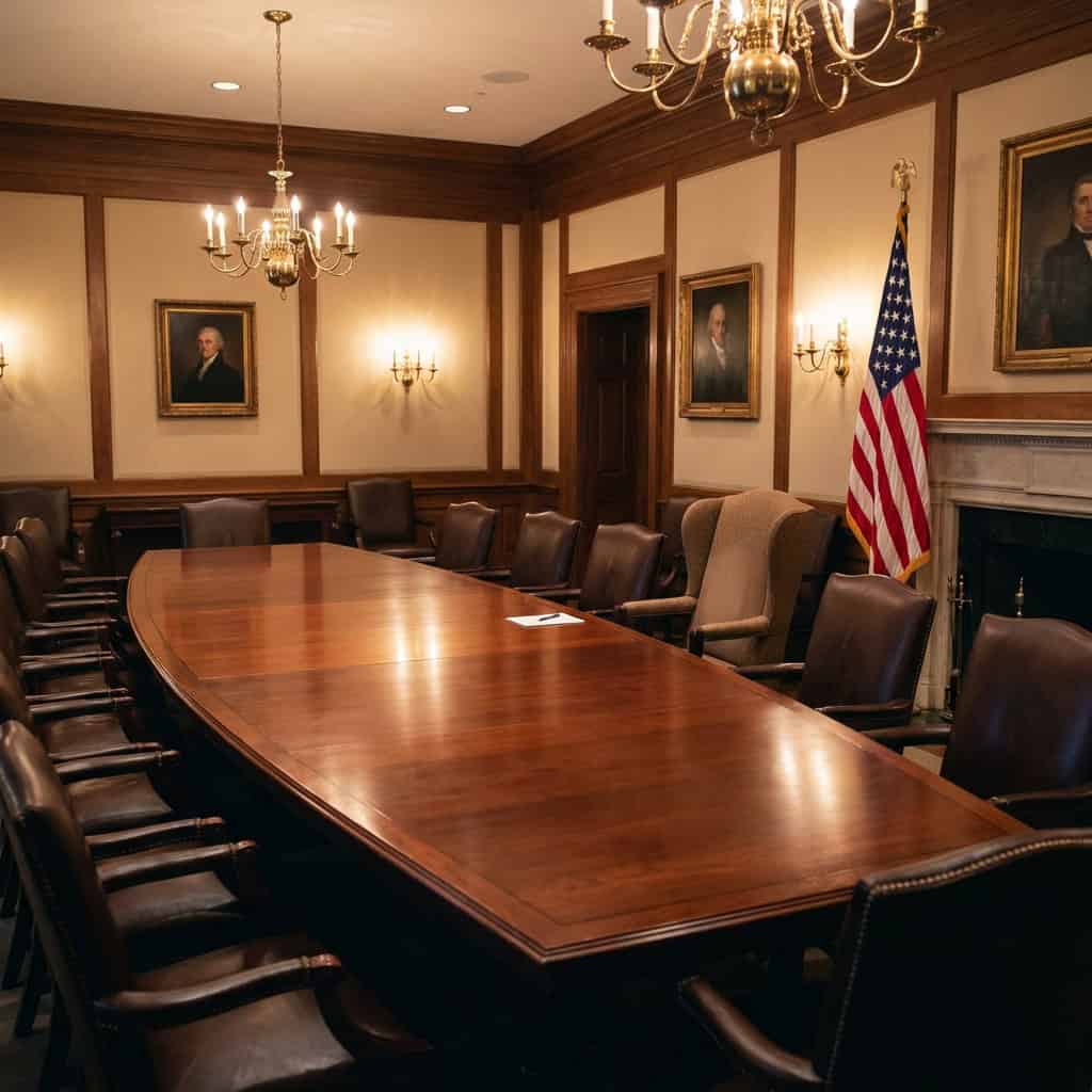 Every photograph you have ever seen of a president meeting with their cabinet — the long table, the leather chairs, the serious faces — was taken in the Cabinet Room, and that table is the center of it.