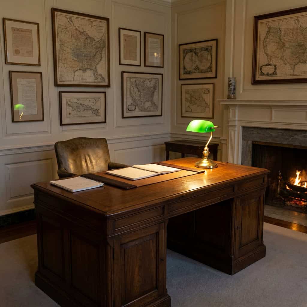 The Map Room was a working space — not a ceremonial one. The furniture was functional, not decorative. The desk was chosen for utility, not beauty. And that is what makes it significant — this was the desk where a president managed a global war from inside his own house.