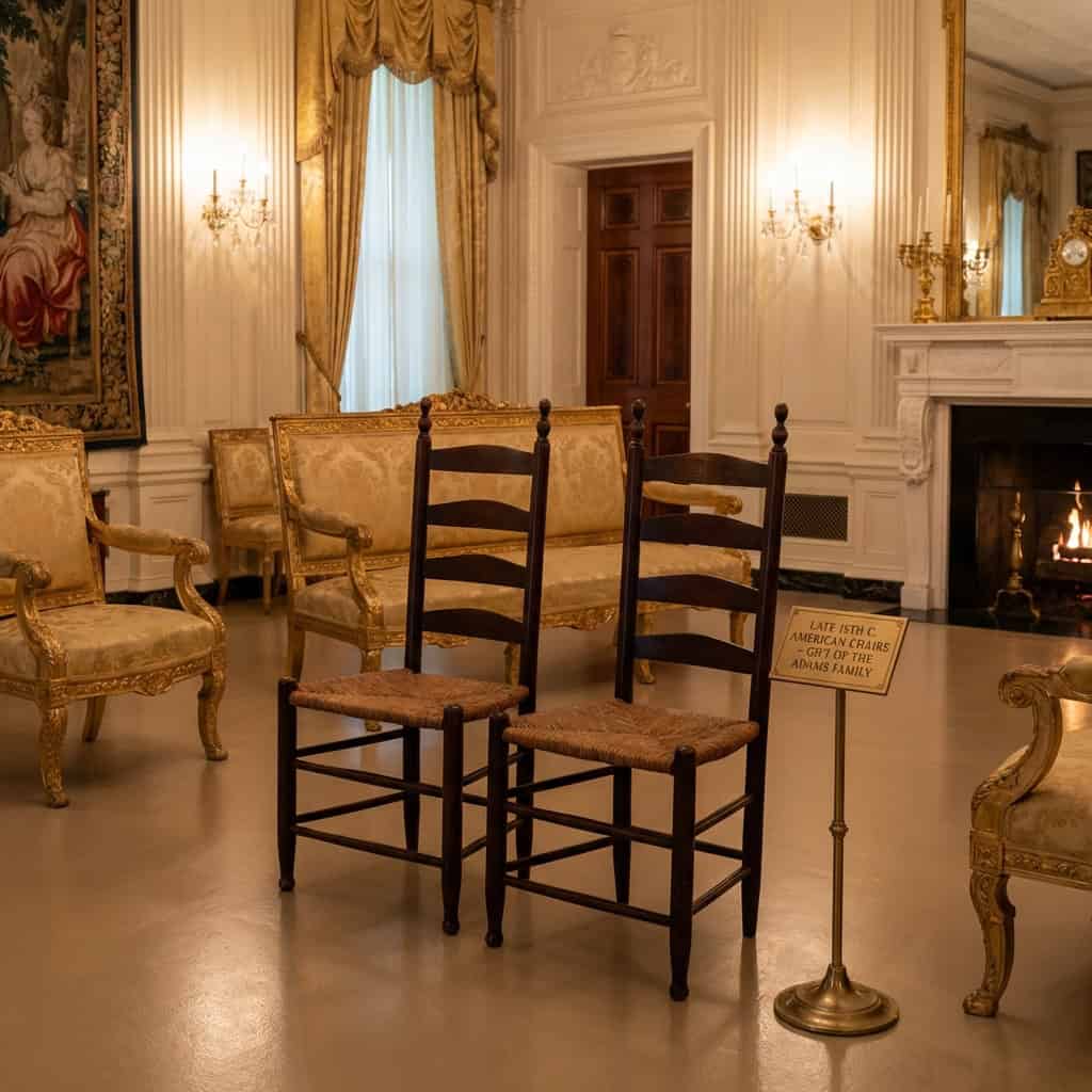Paintings, china, silverware, textiles — but the most fascinating pieces are the furniture. Desks where presidents signed documents that changed the world. Chairs that survived a fire set by a foreign army. Tables that have hosted kings, queens, and prime ministers for over two centuries.