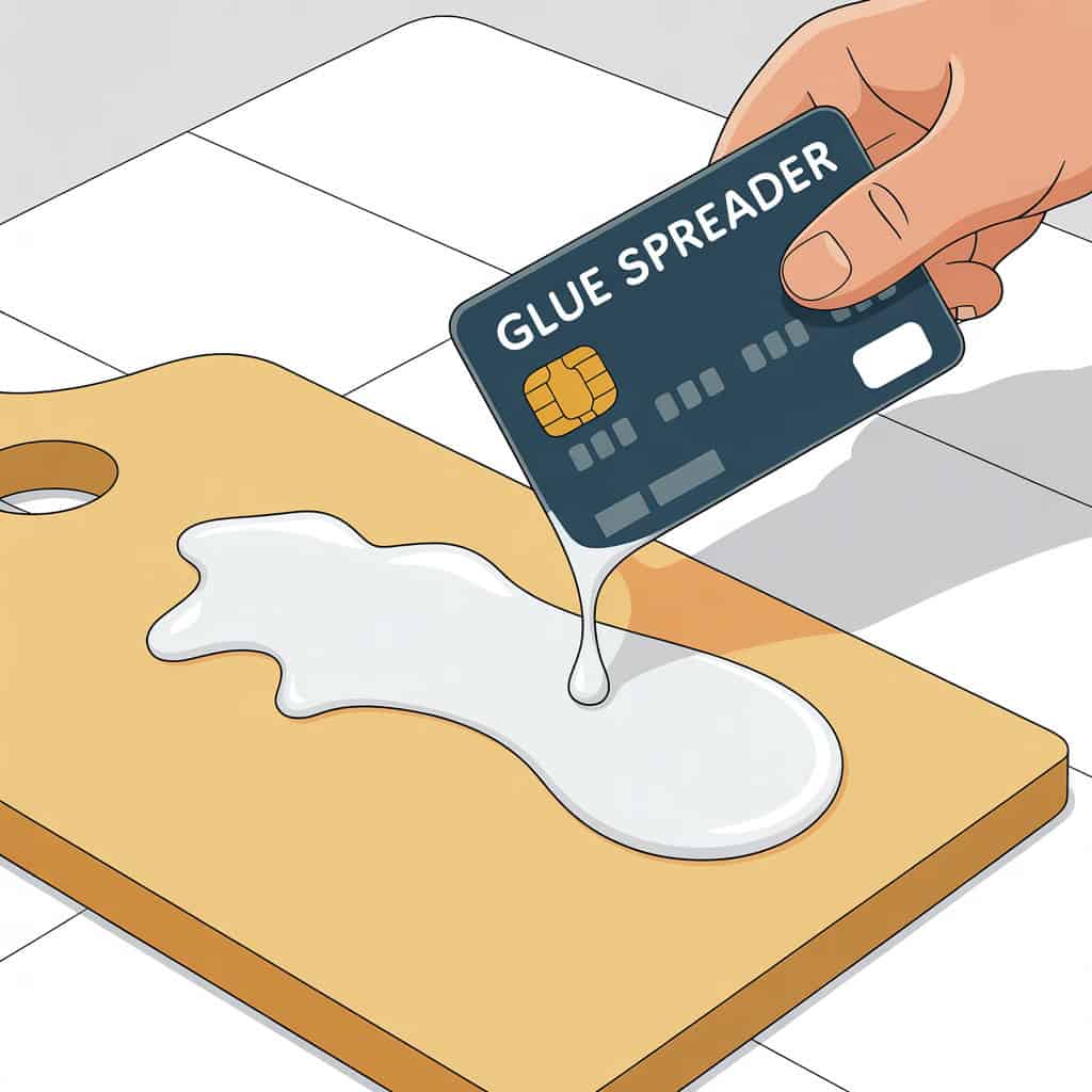 Old credit cards make great glue spreaders. The flat edge lays down an even coat across panels, and the flexibility helps push glue into joints.