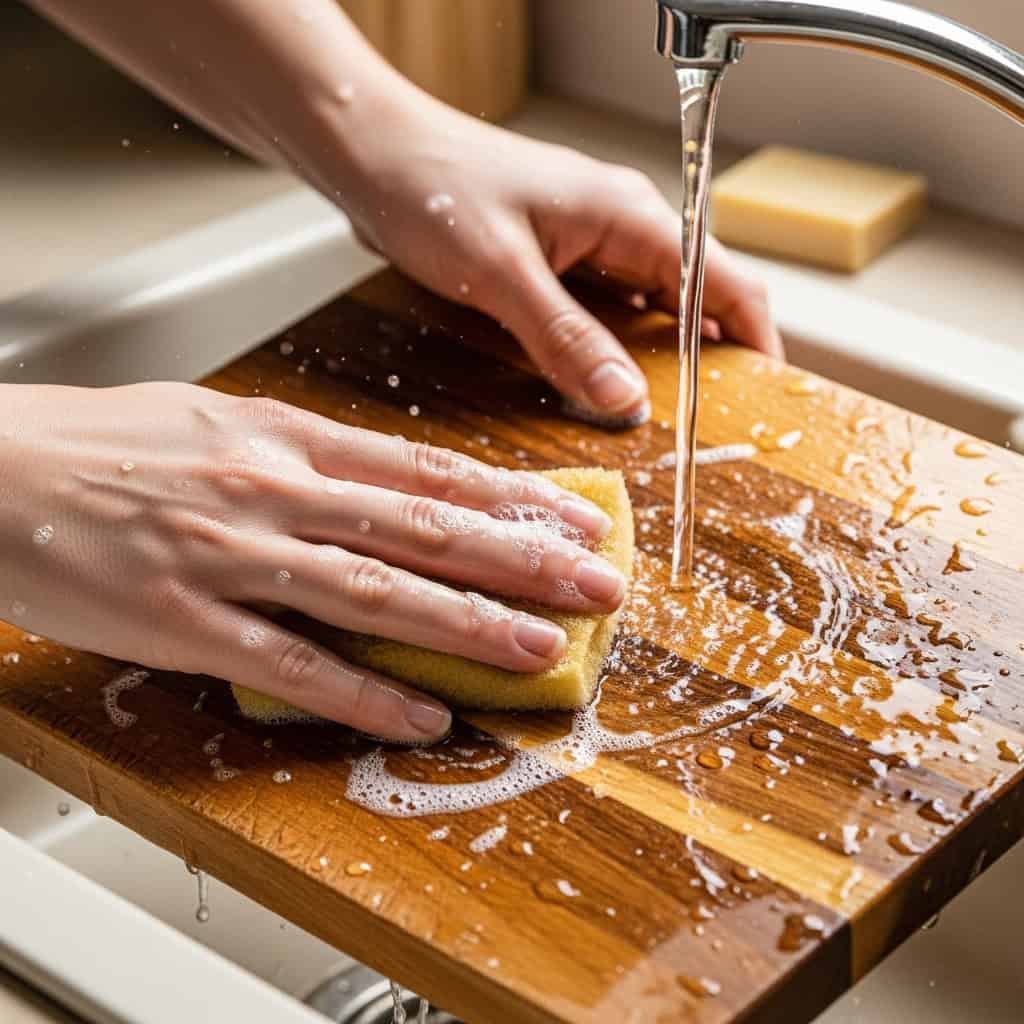 While this works great for your plates, these same harsh detergents strip away the natural oils and any protective treatments from your wooden cutting board.