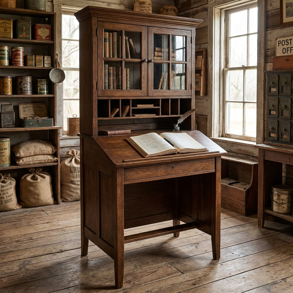 These were common in plantation offices, general stores, post offices, and anywhere that required someone to keep books while staying on their feet. They were built like tanks — usually from solid oak or walnut — because they had to survive decades of daily use.