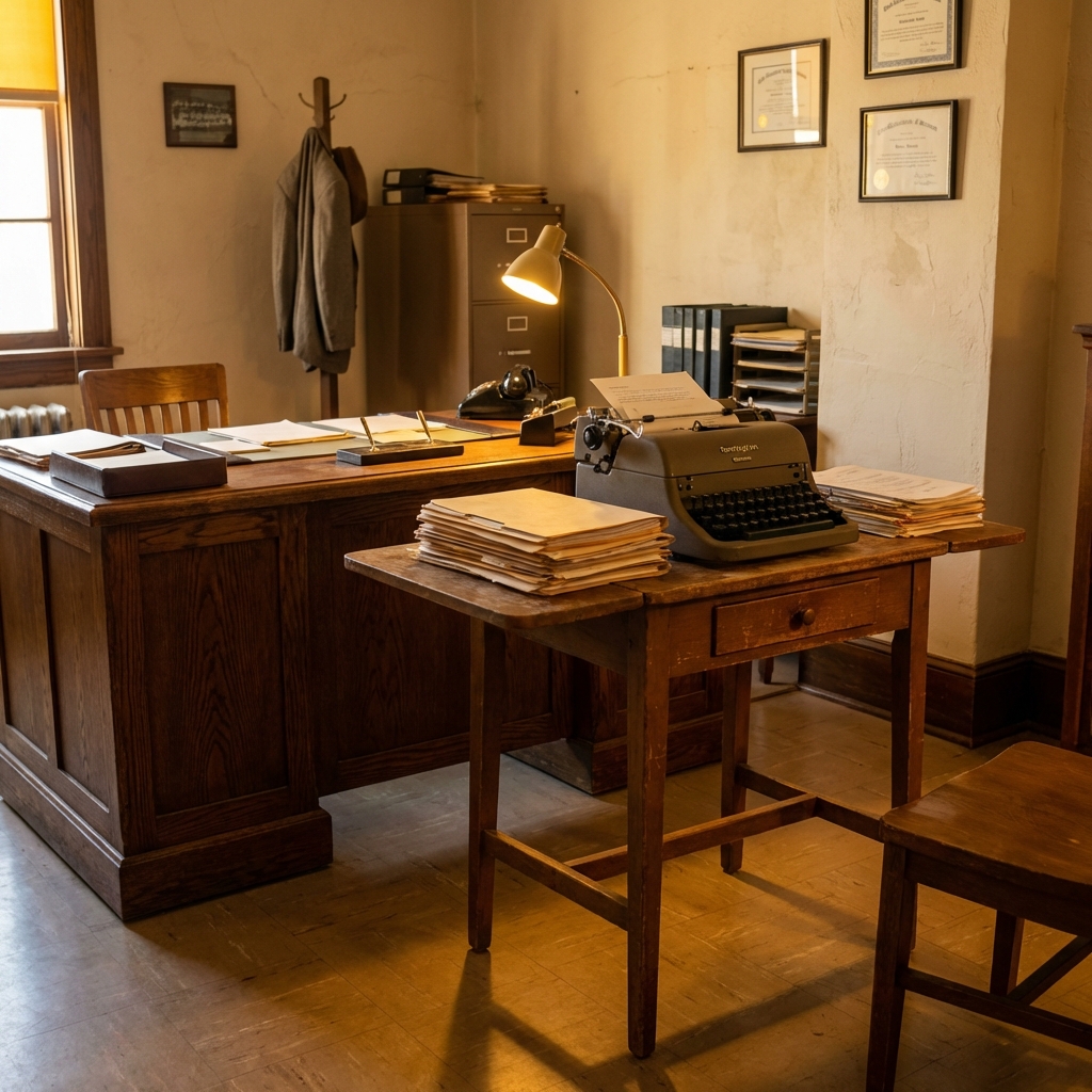 The key design detail was the height. A typewriter required the typist’s forearms to be parallel to the floor, which was lower than a standard desk surface. The typing table solved this, and it sat beside or perpendicular to the main desk as a dedicated workstation.