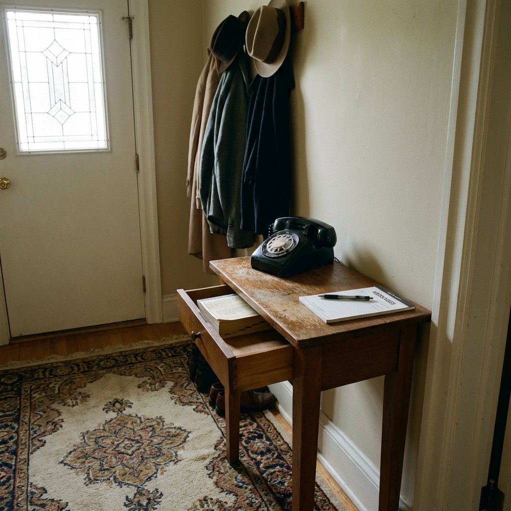 The telephone desk lived in the hallway, the kitchen, or the small nook between rooms where the phone jack happened to be. It was the communication hub of the house before communication became something you carried in your pocket.