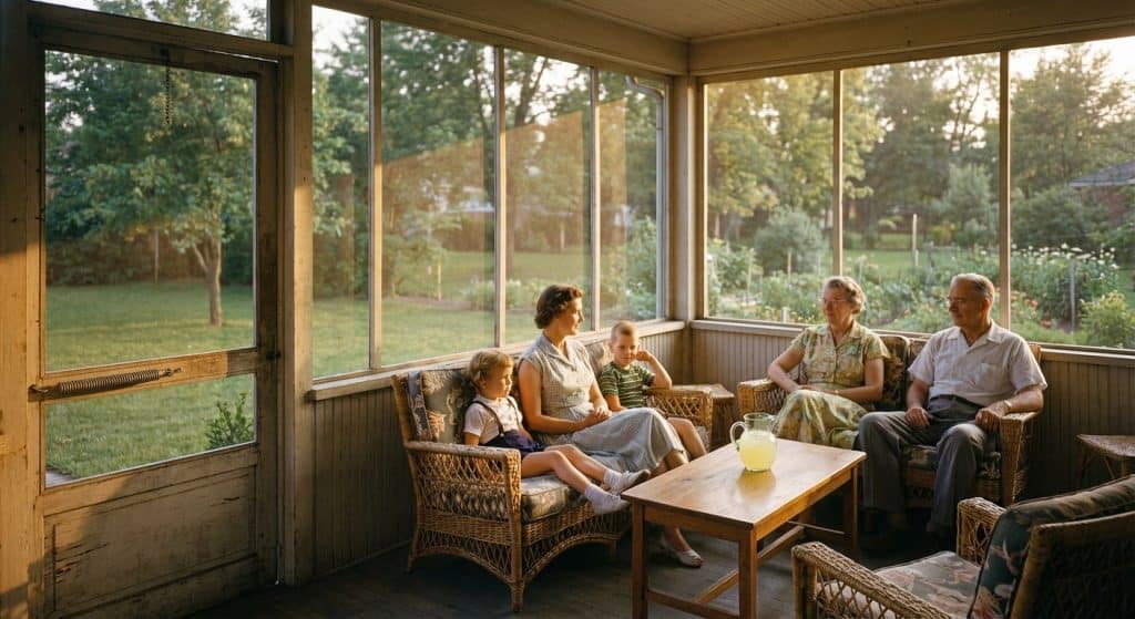 We stopped building porches like this because AC moved us inside and TV kept us there.