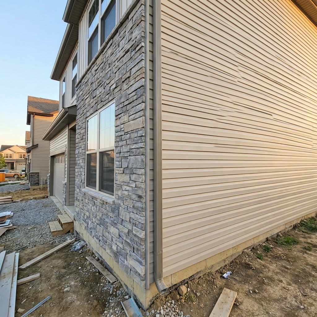 Drive through a new subdivision and look at the front facades. You will see gorgeous stone or brick on the front of the house — and vinyl siding on every other side.