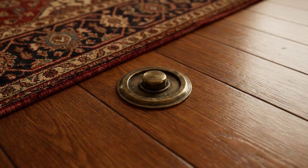 You are moving into an old house. You pull up the dining room rug and find a strange brass bump in the middle of the floor.