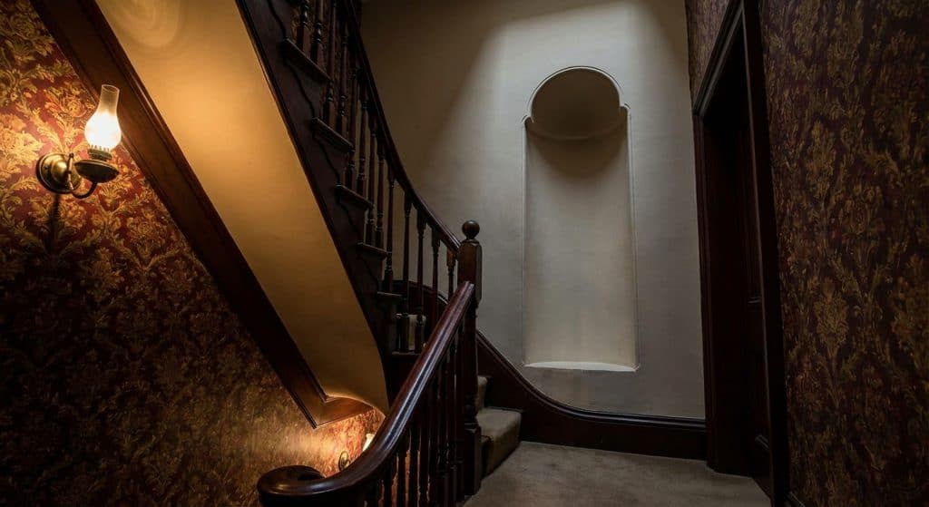 Builders often added a “Coffin Corner”—a curved niche cut into the wall of the staircase landing.