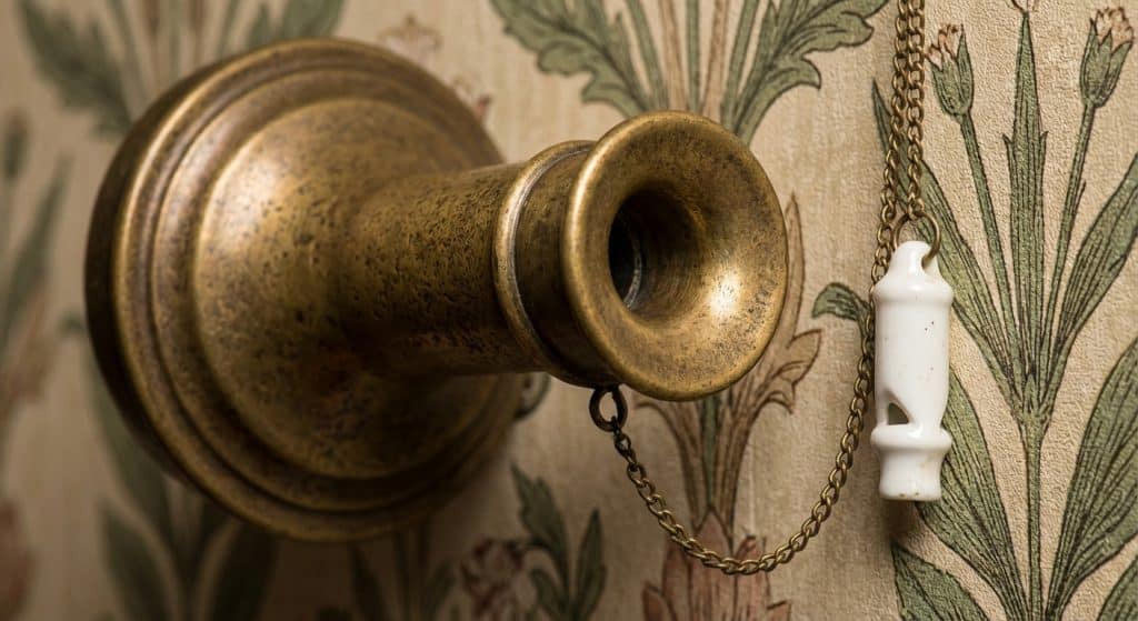 It was wired to a buzzer in the kitchen (the “annunciator”), signaling the servants to clear the plates or bring the next course.