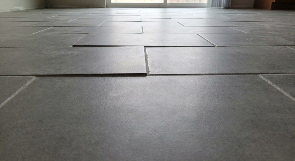 Modern 12×24 inch tiles are often slightly warped (cupped) from the kiln. If you try to lay them without a professional leveling system (clips and wedges), one corner will stick up higher than the next.
