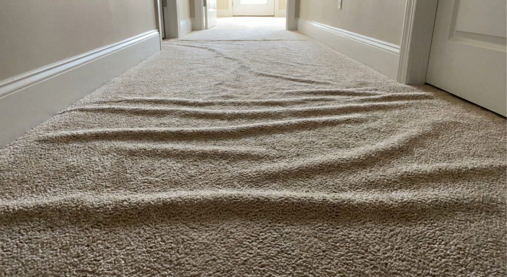 You cannot just lay carpet down; it must be mechanically stretched. Without a power stretcher, the carpet will loosen and buckle within a year.