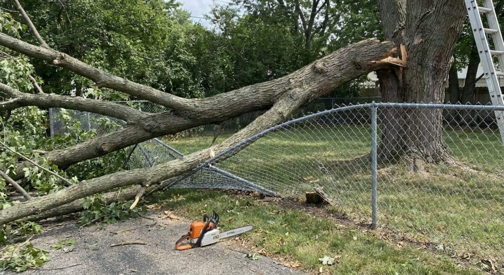 • Leave it to the Arborist: If the tree is taller than a stepladder, don’t touch it. Negotiate a discount by having them drop the tree but leaving the wood for you to clean up.