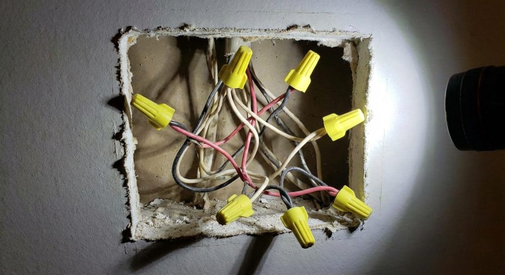 A common DIY error is splicing wires together inside a wall without a junction box, or plastering over a box.