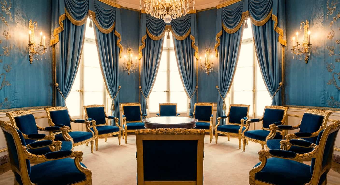 It is not ornate. It is not gilded. It is a working table in a working room — and that simplicity is what makes it powerful. The furniture does not need to be impressive when the decisions being made on it are reshaping the world.