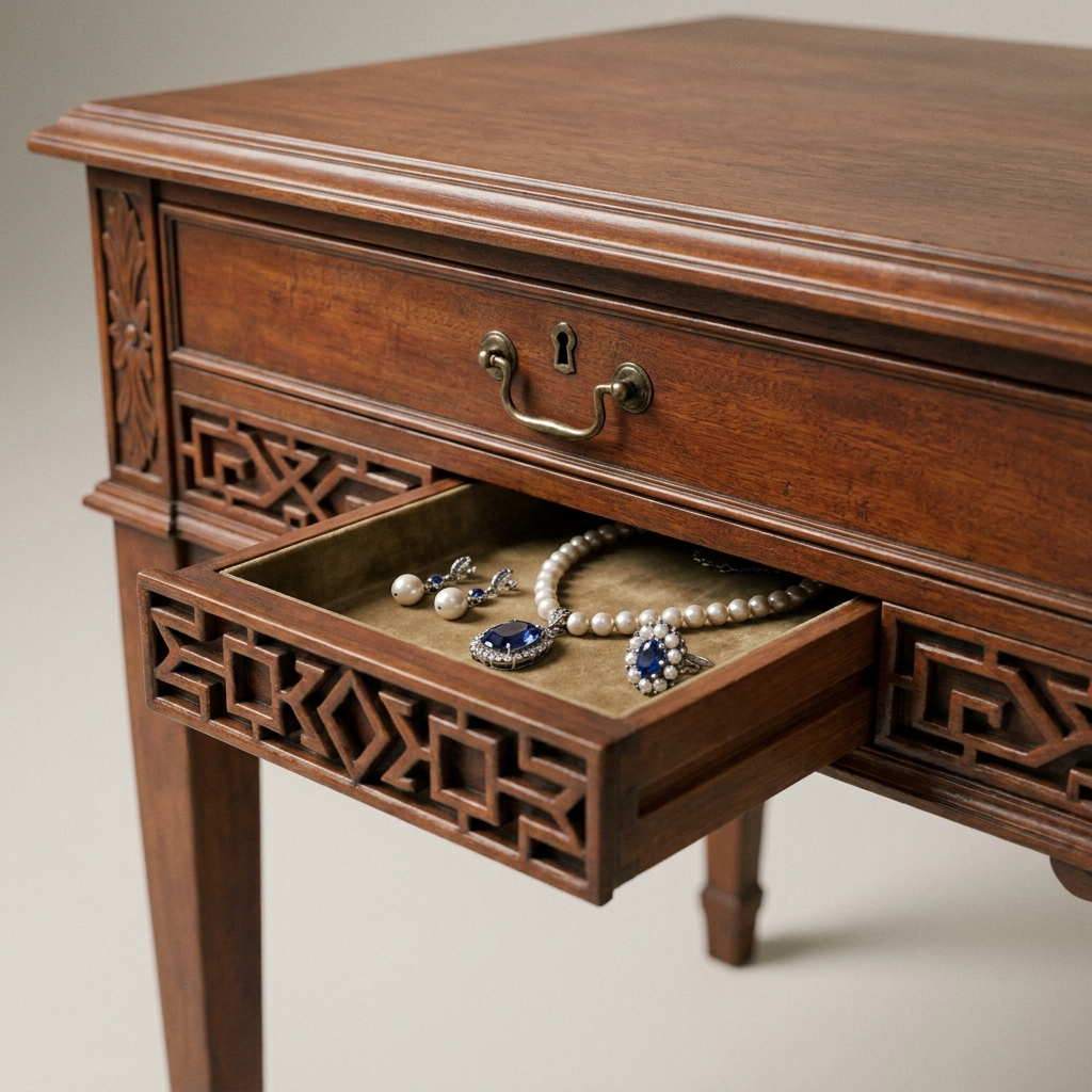 But on certain pieces, one of those carved panels was a spring-loaded drawer front. There was no handle, no keyhole, and no visible seam.
