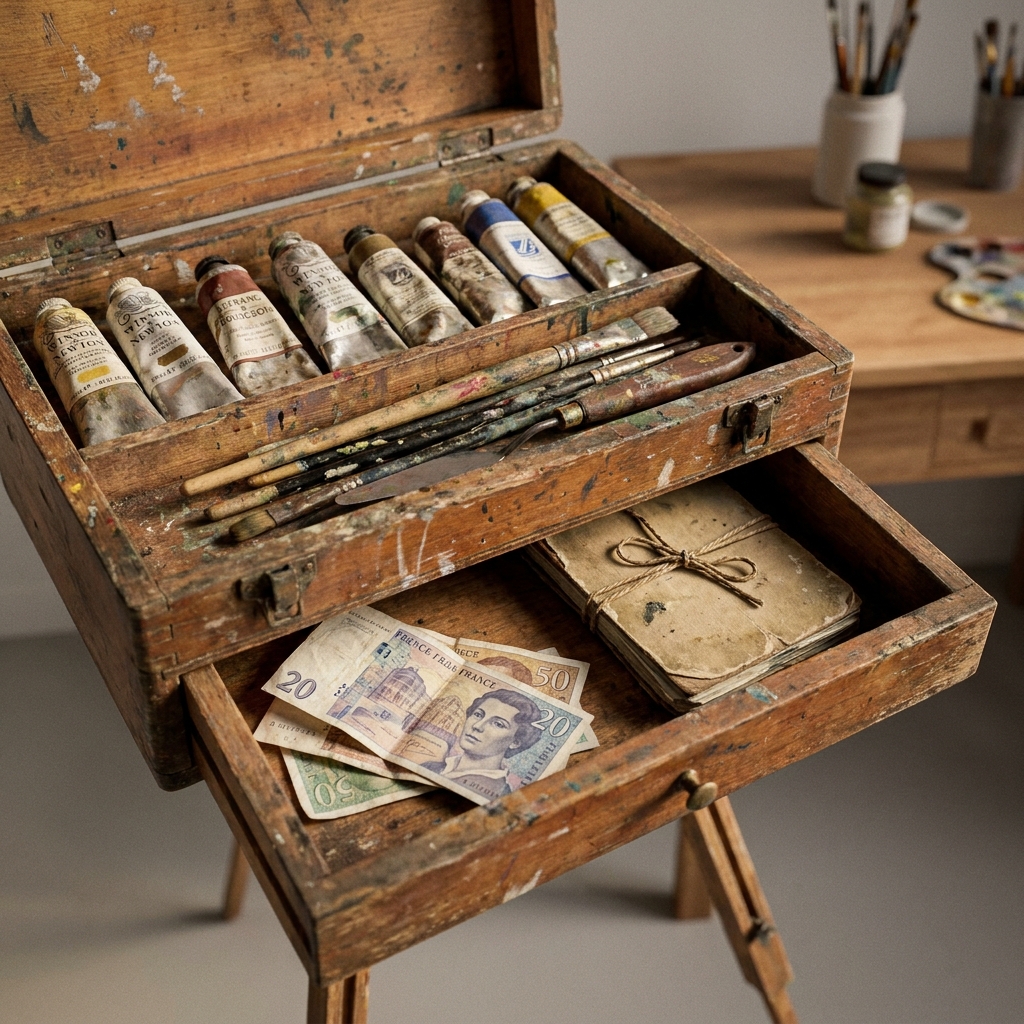 Many have sliding panels behind the palette storage or false bottoms under the paint tubes to hide cash from bandits.