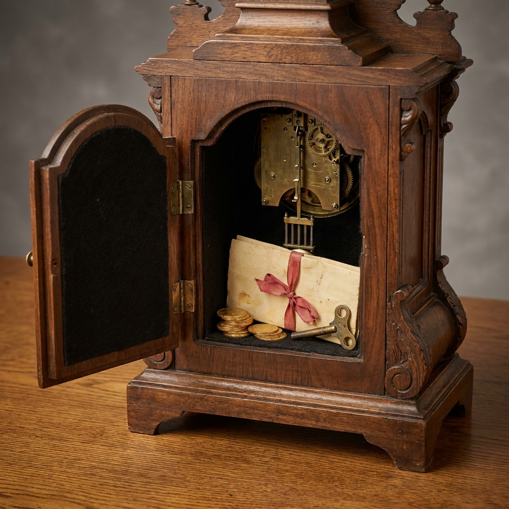 Mantel clocks were perfect hiding spots because nobody ever moved them.
