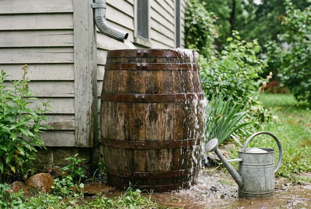 Barrels under the downspouts caught rain for the garden and the laundry.