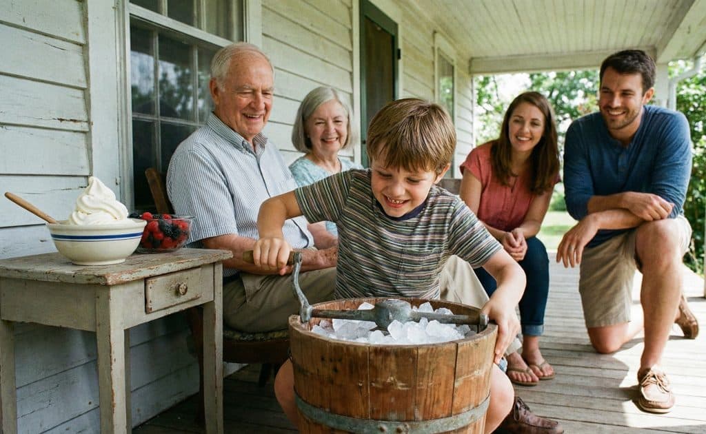 With some milk, sugar, and a hand-crank machine, you created dessert on the back porch.