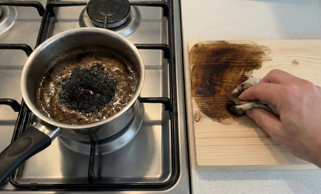 Staining wood usually involves harsh fumes and a $20 can of chemicals. Your grandmother used the leftovers from breakfast.