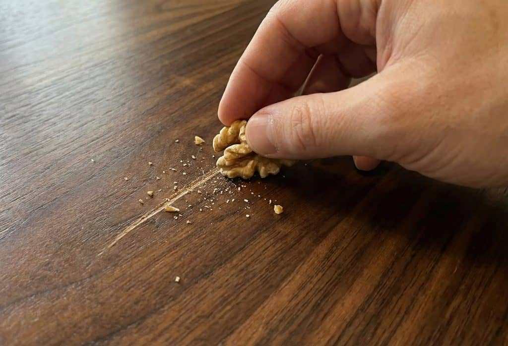 He’d take a raw walnut meat and rub it diagonally over the scratch. The natural oils in the nut darken the wood instantly.