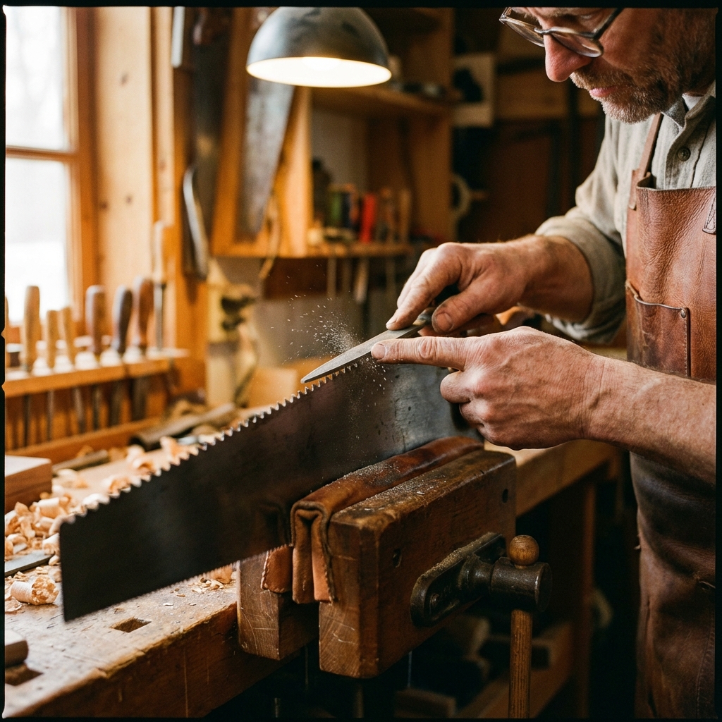 Today, when a saw gets dull, you throw it away and buy a new one. The idea that a saw was an investment you maintained for decades — even passed down through generations — has almost completely disappeared.