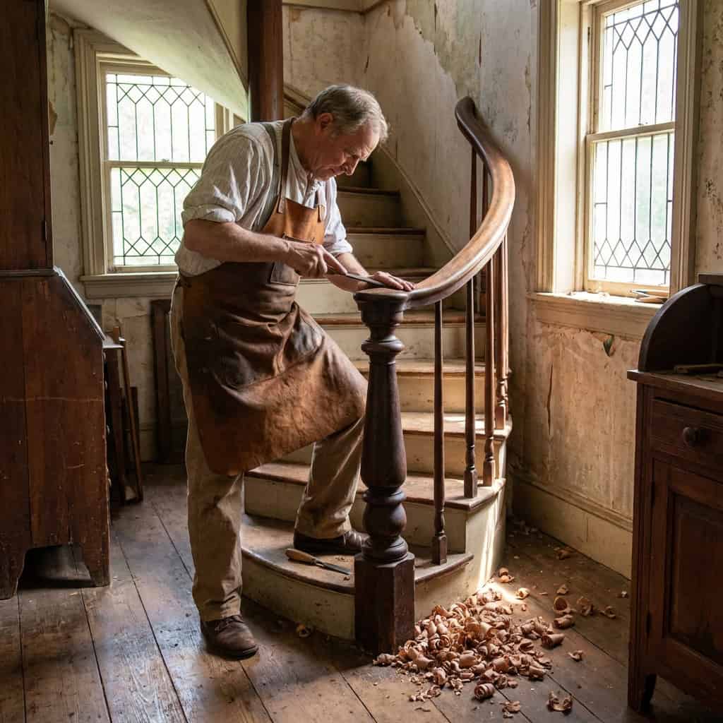 He calculated the rise and run, cut the stringers, turned the balusters, shaped the newel post, and assembled the entire staircase as a single, integrated piece of architecture. The best stair builders created pieces that were equal parts engineering and art.