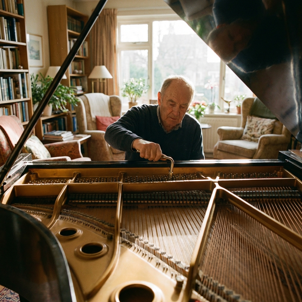 A piano has over 200 strings, each one under enormous tension. Tuning one requires adjusting each string’s tension with a specialized wrench while listening for precise intervals between notes.