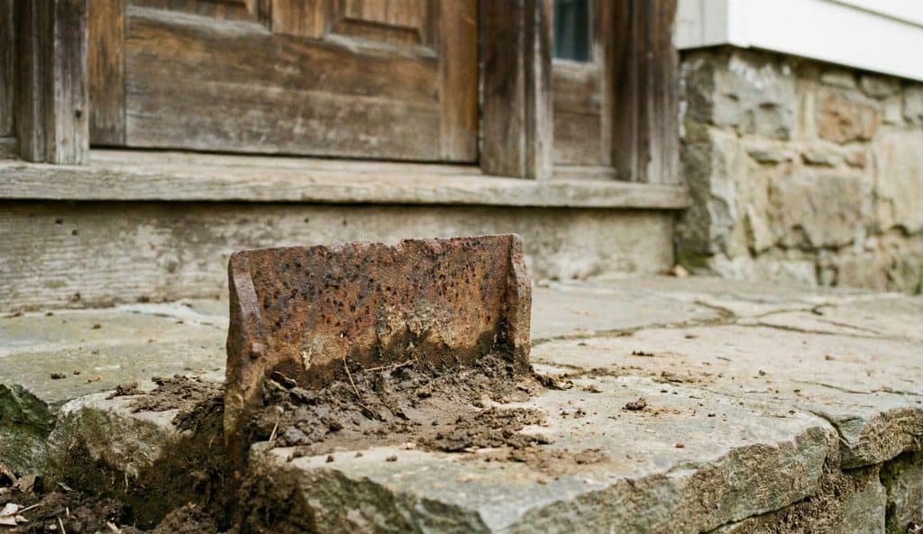 You didn’t track the outside world onto your wife’s rug. You scraped the heavy muck off your soles on this iron blade before you ever touched the doorknob.