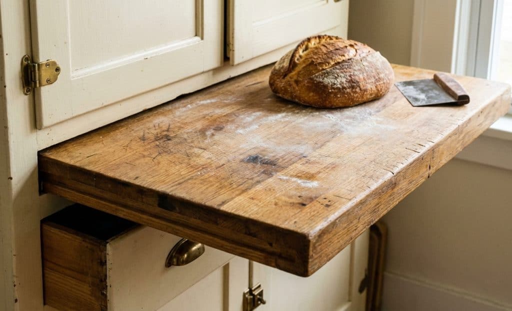 This wasn’t just for cutting bread. It was a massive workspace for kneading dough or clamping a meat grinder.