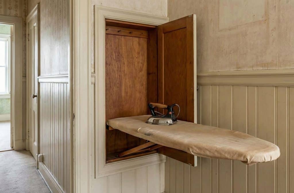 Instead of wrestling with a clumsy metal stand, old houses had ironing boards hidden behind a discreet narrow door.
