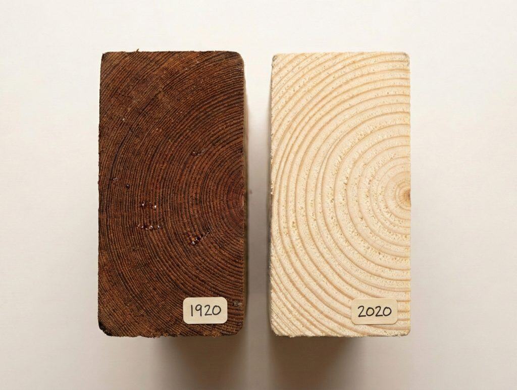 If you cut into a 2×4 from 1920, you will smell the resin. The wood is dark red and heavy as stone.