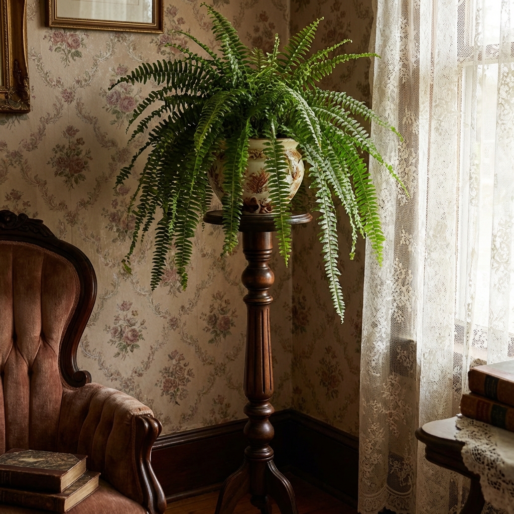 They stood in corners, beside doorways, and in front of parlor windows, giving ferns the elevation and light they needed. In a Victorian home, a room without a fern stand felt incomplete.