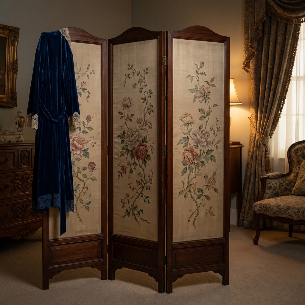 The dressing screen was one of the most elegant solutions to a basic human need — privacy in a shared space. Modern homes solved the problem with drywall. The dressing screen solved it with beauty.