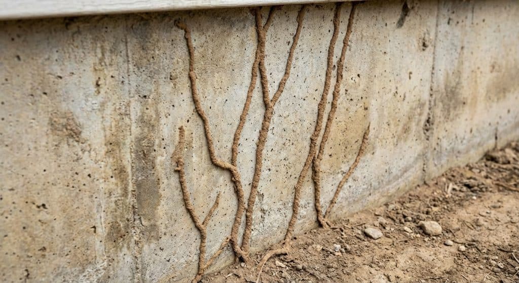 Termites have soft bodies and can’t be exposed to air, so they build these tubes to travel from the ground to your wood framing.