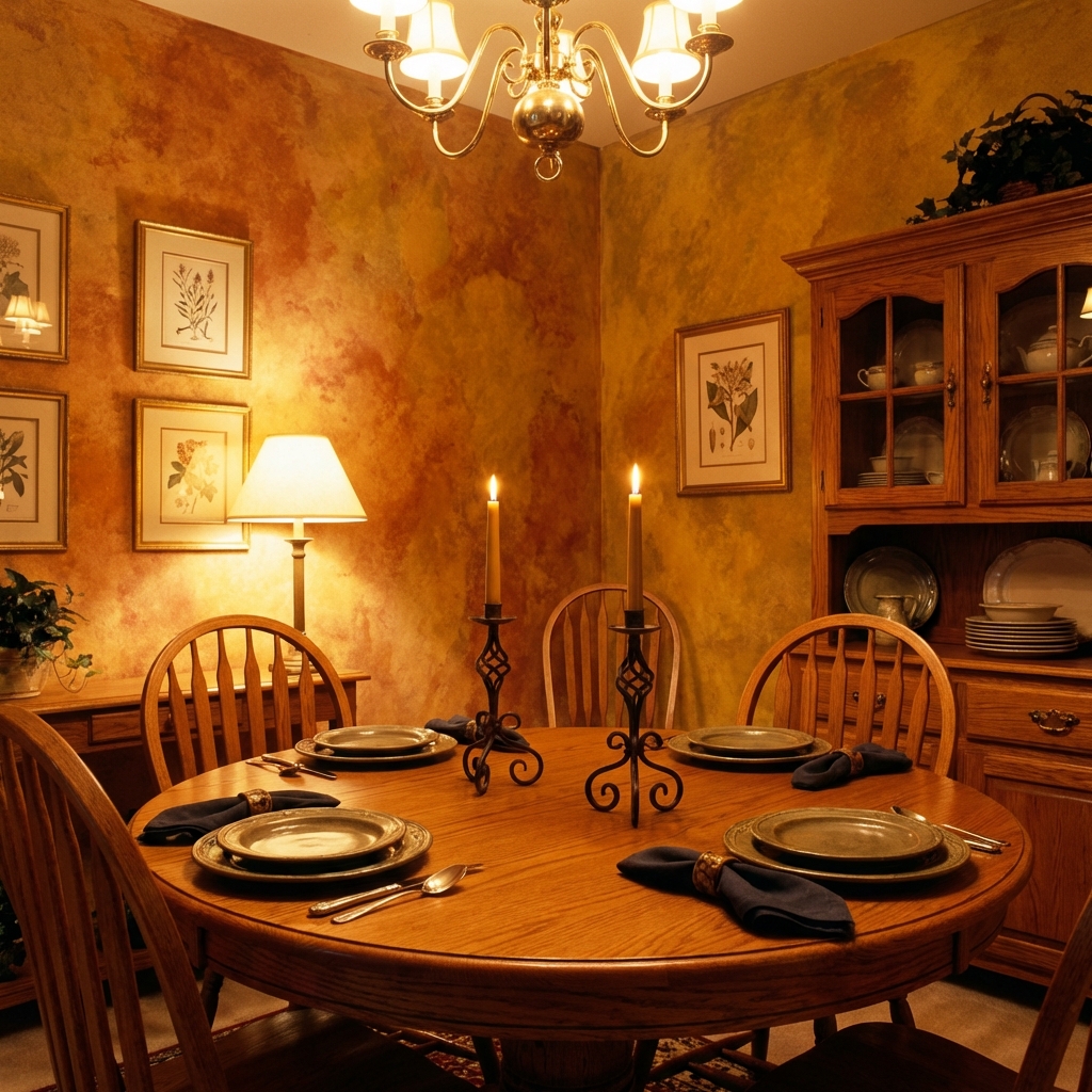 Sponge painting was the DIY faux finish of the decade. You rolled a base coat on the wall, then dabbed a contrasting color with a sponge to create a soft, mottled texture. The result looked vaguely like old Italian plaster — if you squinted.