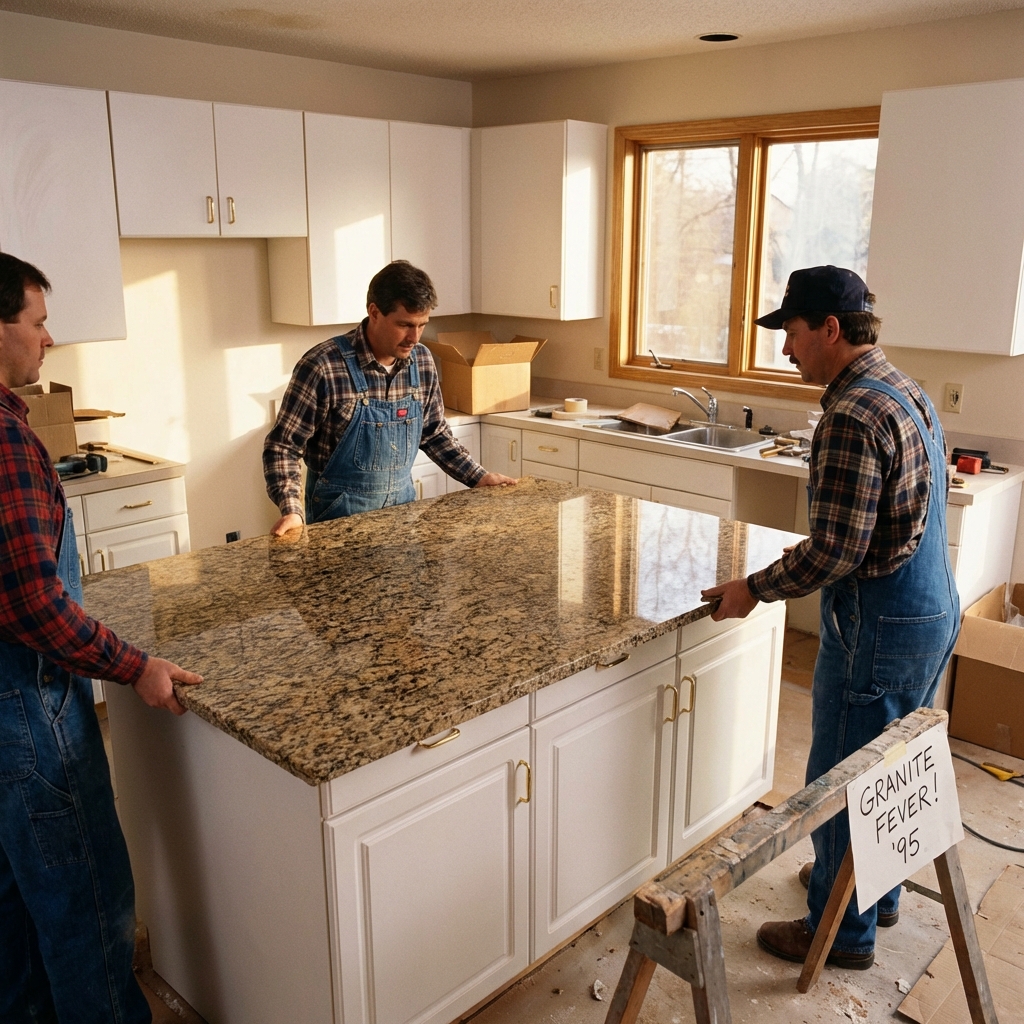 By the late 90s, granite was no longer a luxury — it was an expectation. Every kitchen remodel, every new build, every real estate listing mentioned it.