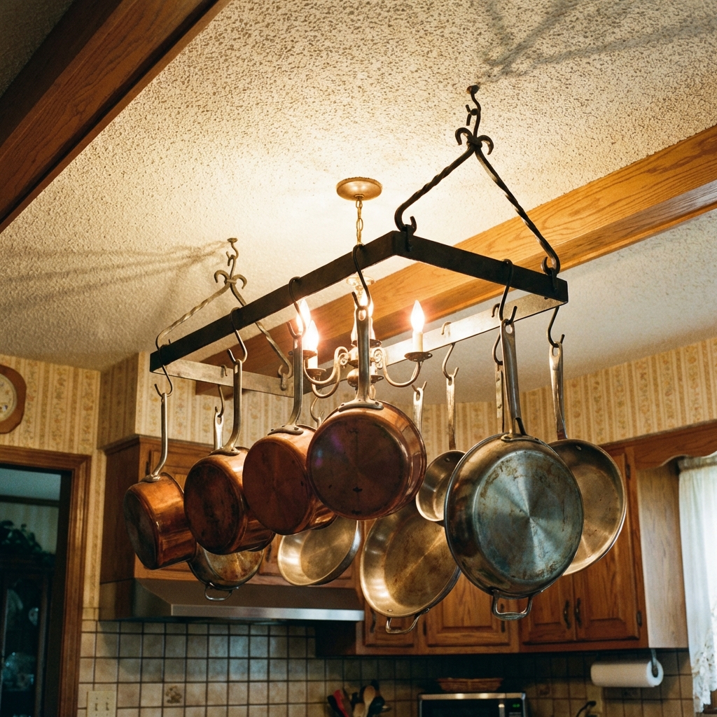 The problem was that most people hung their pots, never used the ones on top, and spent years dusting them. But the pot rack looked incredible, and in the 90s kitchen, looking the part was half the battle.