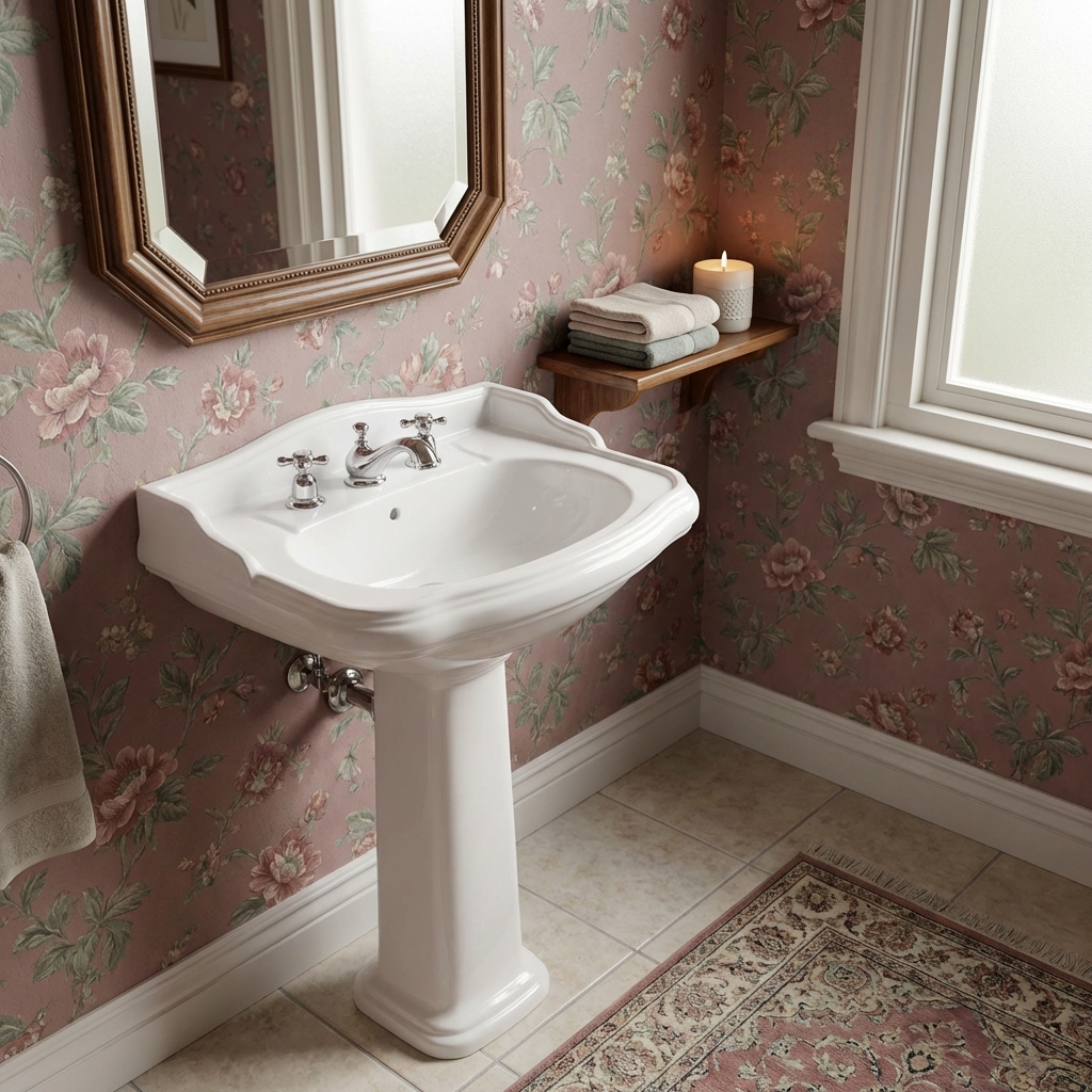 It was part of a broader return to “traditional” bathroom design — white fixtures, subway tile, chrome hardware. The pedestal sink looked clean, classic, and elegant.