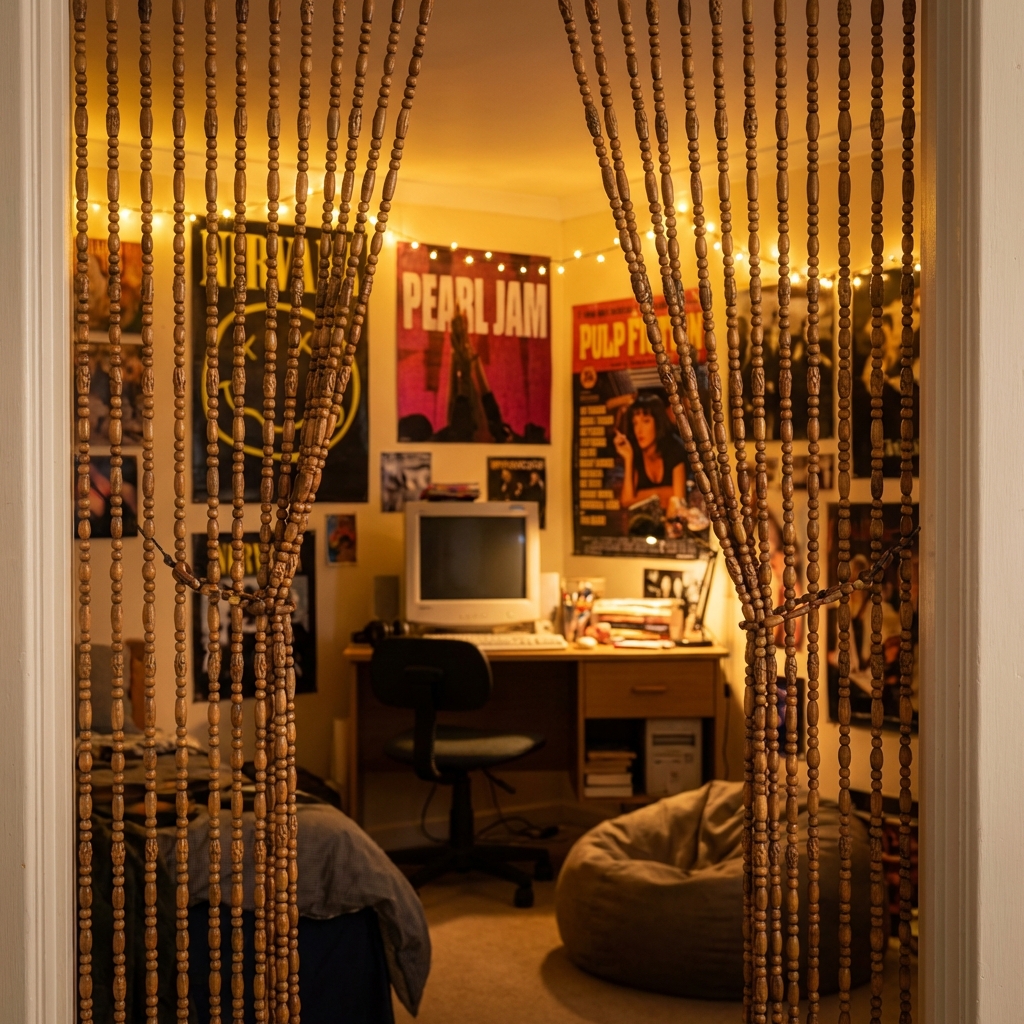 But they looked bohemian and free-spirited, which was the entire point. A beaded curtain said “I am creative and unconventional” — even if the room behind it was completely ordinary.