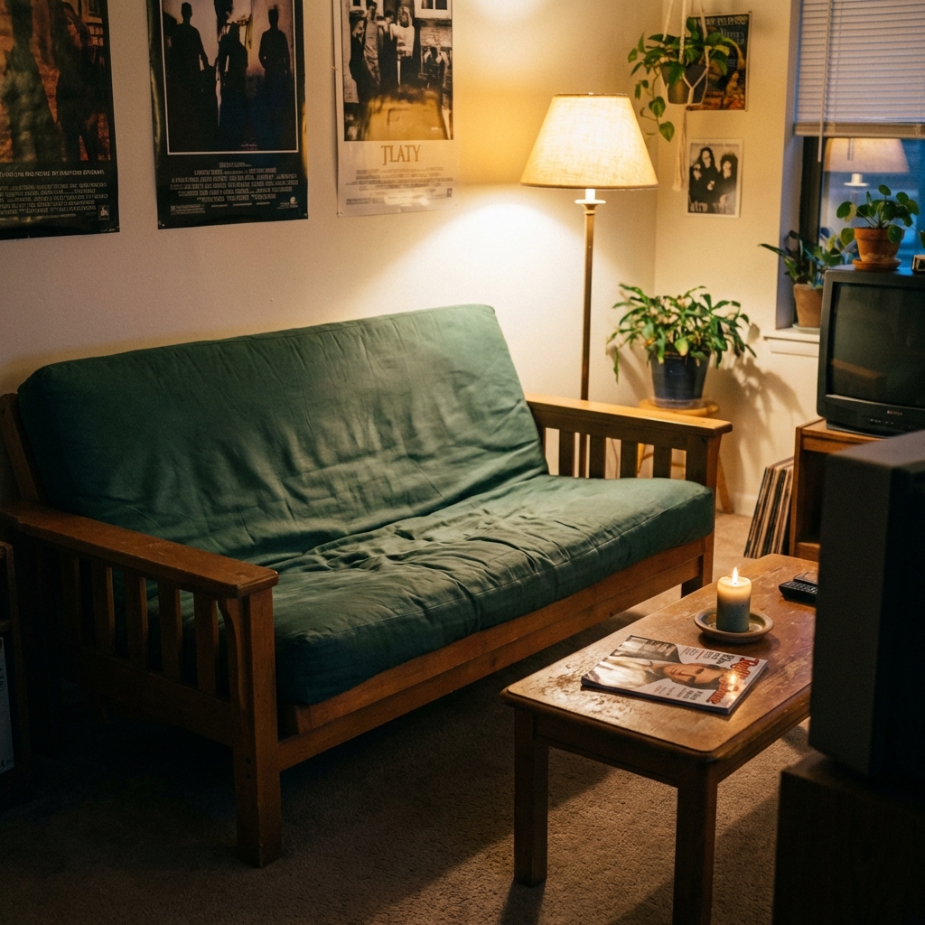 The wooden frame creaked. The mattress was thin. The metal bar in the middle hit you in the spine at 3 AM. But the futon was affordable, portable, and solved a problem that every young person had — not enough space and not enough money for separate furniture.