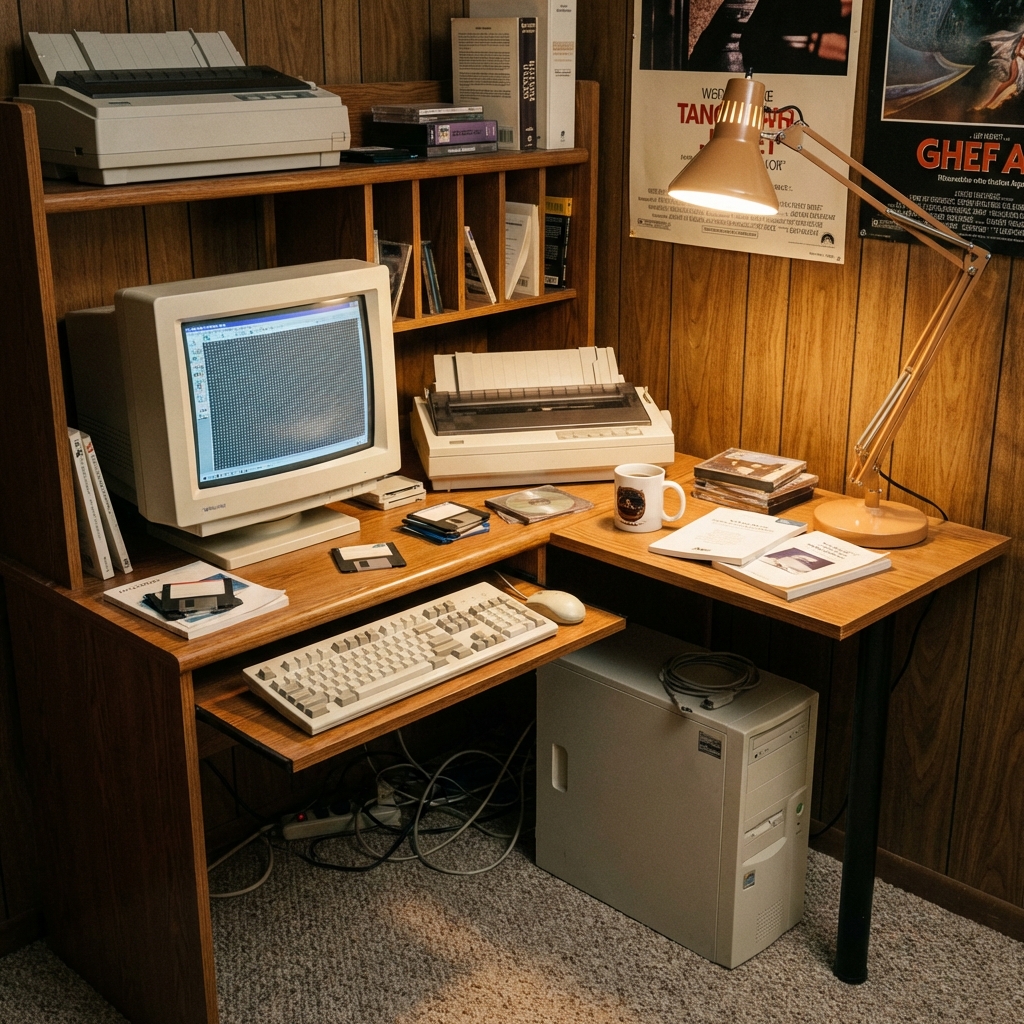 The computer desk was the first home office. It was cramped, ugly, and revolutionary. Everything we do today on laptops and phones started at that little desk in the corner.