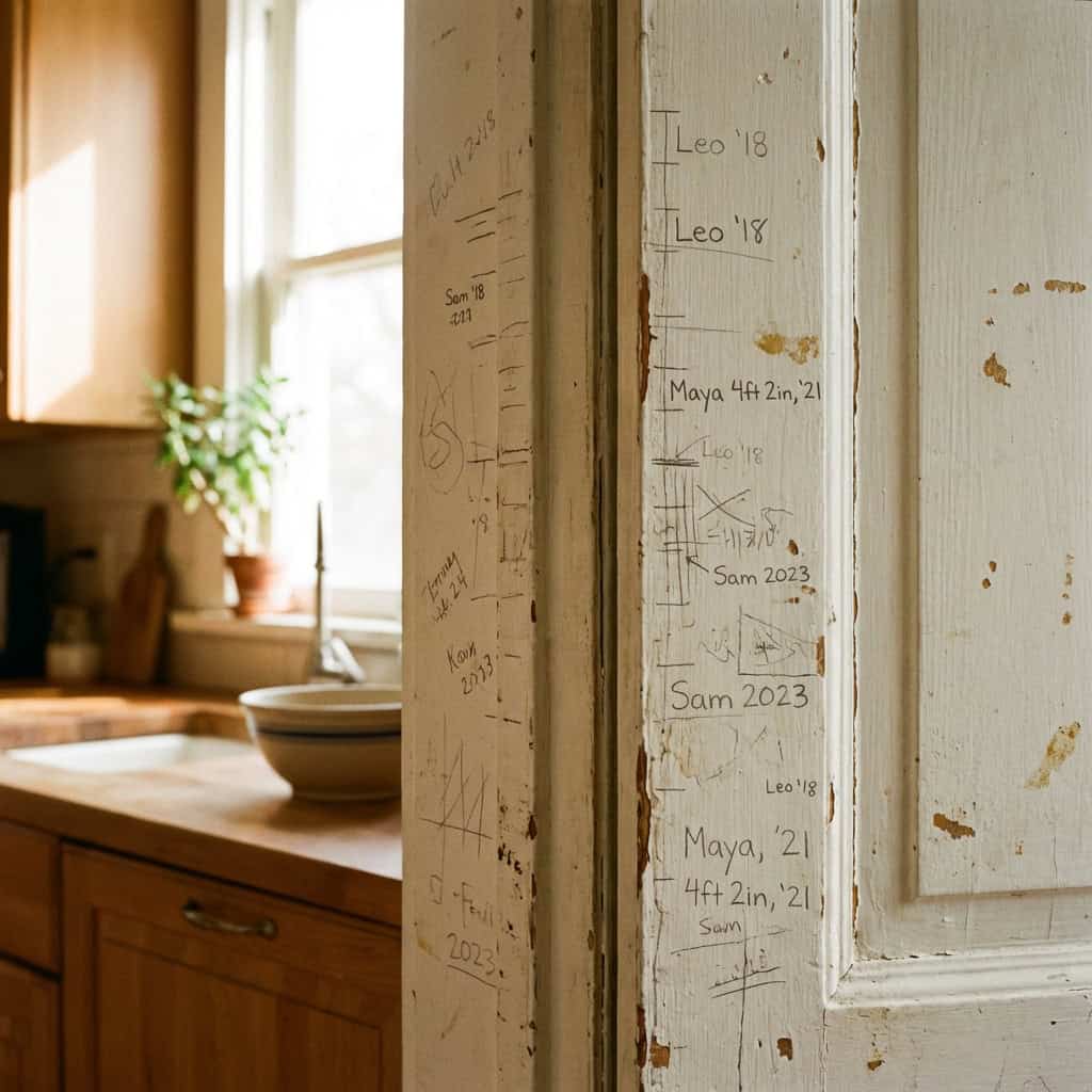 You move into your new house, walk past a door frame in the kitchen or hallway, and notice small pencil marks with names and dates. “Emma — 3 years, 4 months.” “Jake — Sept 2014.” A series of horizontal lines climbing up the frame, each one a moment in time when a parent stood a child against the wall and made a mark.