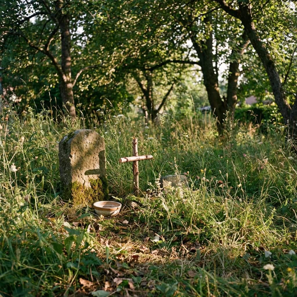 It is a small wooden box. Or a wrapped bundle. Or just bones, arranged carefully in a shallow hole, sometimes with a stone or a small marker above them that you did not notice before.