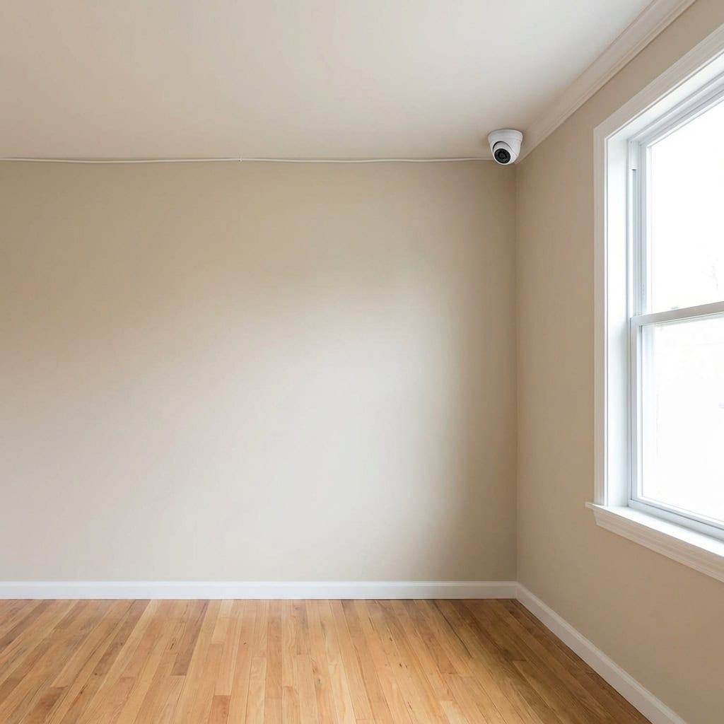 You move in and notice small cameras mounted in the corners of rooms, above the garage, overlooking the driveway, aimed at the backyard. Some are modern. Some are ancient — the kind with visible wires running along the ceiling and into a VCR or DVR in a closet somewhere.