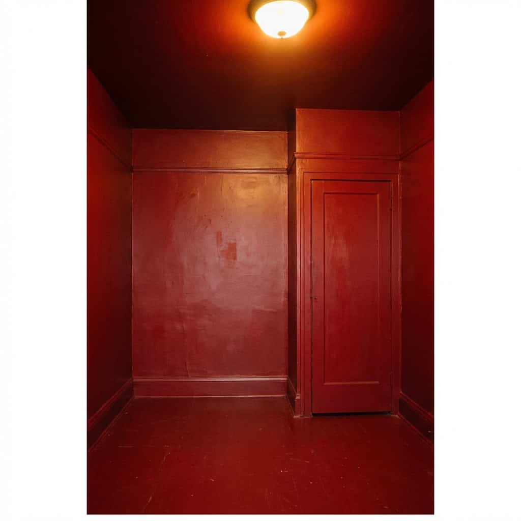 The entire room is red. Or purple. Or electric blue. Not just the walls — the ceiling, the trim, the door, and sometimes even the closet interior. Every surface. One color. No accent. No relief.