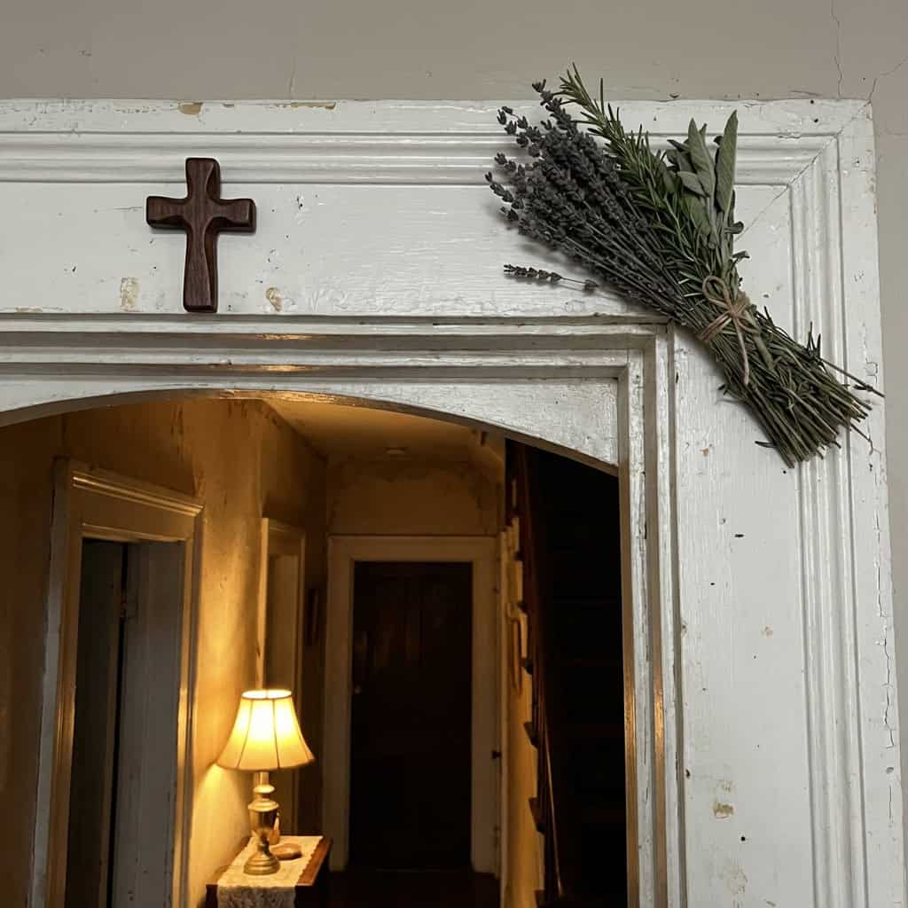 You find a small cross above every door frame. Or a medallion buried in the foundation. Or a cluster of dried herbs tied with string and tucked into the corner of a closet. Or a small statue placed in a specific spot in the yard, facing a specific direction, with clear intentionality.